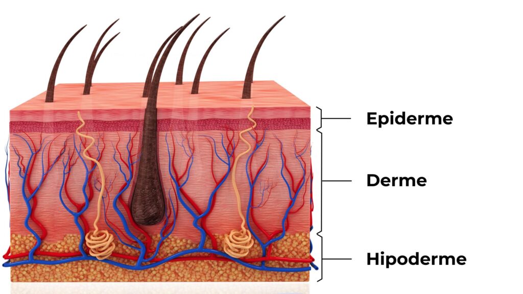 A Pele é composta por 3 camadas de tecido: